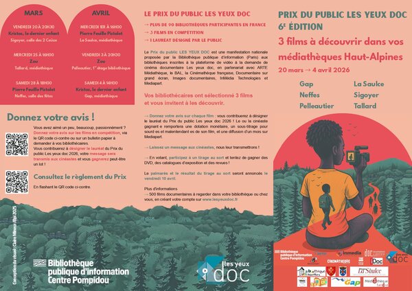 Les Yeux Doc’ est un festival de cinéma documentaire qui invite le public à découvrir 3 films projetés dans 6 médiathèques du territoire.