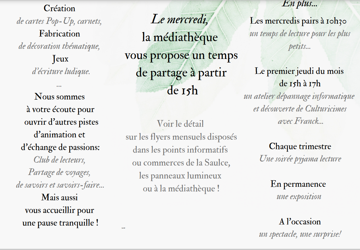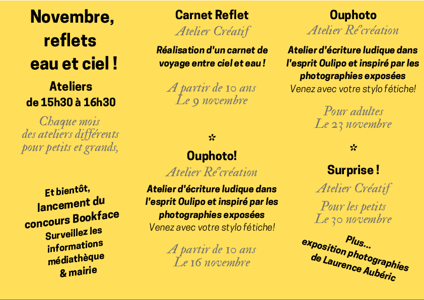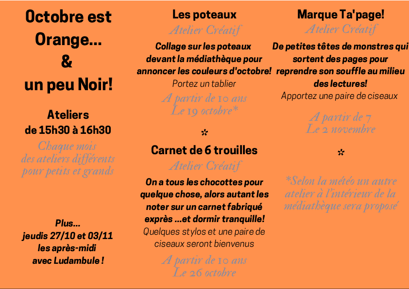 JEUDI 27 OCTOBRE ET 3 NOVEMBRE DE 14H00 A 17H00