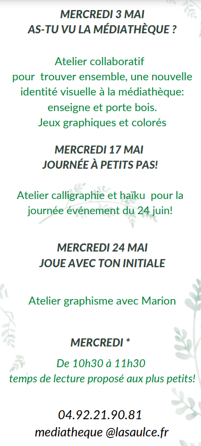 N'hésitez pas à vous inscrire au 04.92.21.90.81